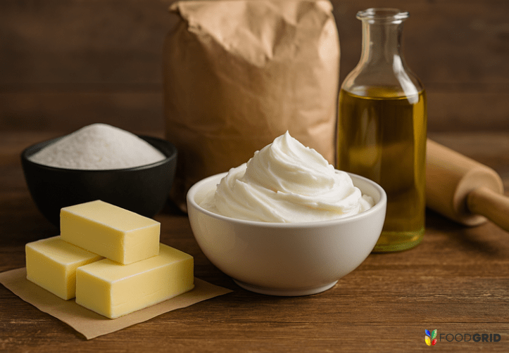 - Moisture content: Butter contains around 15–20% water; shortenings are typically low-moisture, which may influence dough/liquid systems.